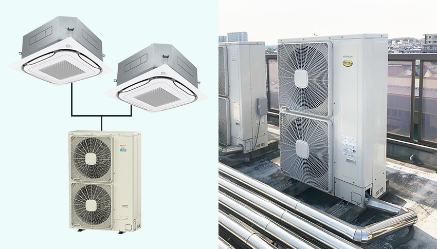 最も一般的な業務用エアコンの構成であり、小規模〜中規模の店舗やオフィスなどで使用されています。