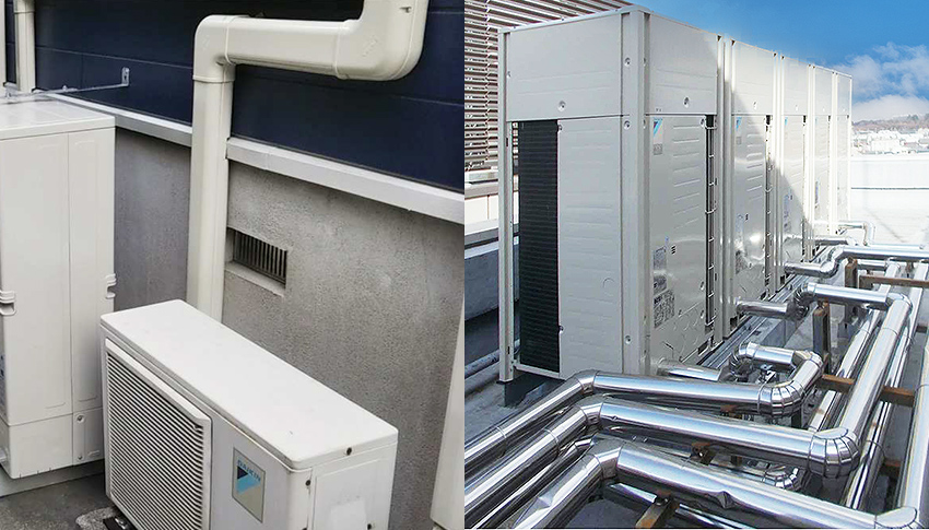 部屋が多い建物やビルの空調、面積の広い空間、工場等で利用されています。