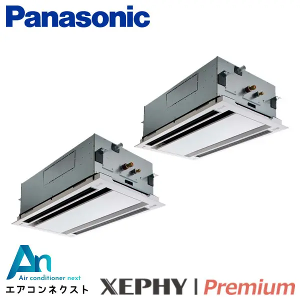 パナソニックの天井カセット形2方向は、直線的な空間や廊下・オフィスに最適な、清潔性と快適性を兼ね備えた形状です。