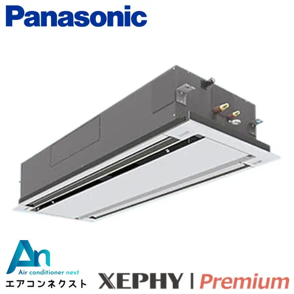 パナソニックの天井カセット形2方向は、直線的な空間や廊下・オフィスに最適な、清潔性と快適性を兼ね備えた形状です。