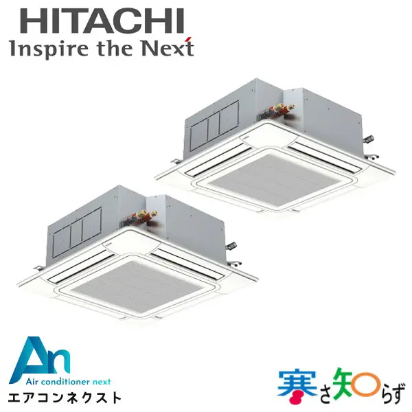 日立の天井カセット形4方向は、人への直接風を抑えた優しい気流と、空間に配慮したクリーン設計が特長です。